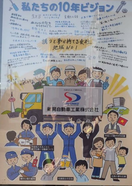 経営理念は新晃自動車が永遠に目指す物ですが、社員一人一人のビジョンは自分たちがこの先どう在りたいかを描いた姿です。